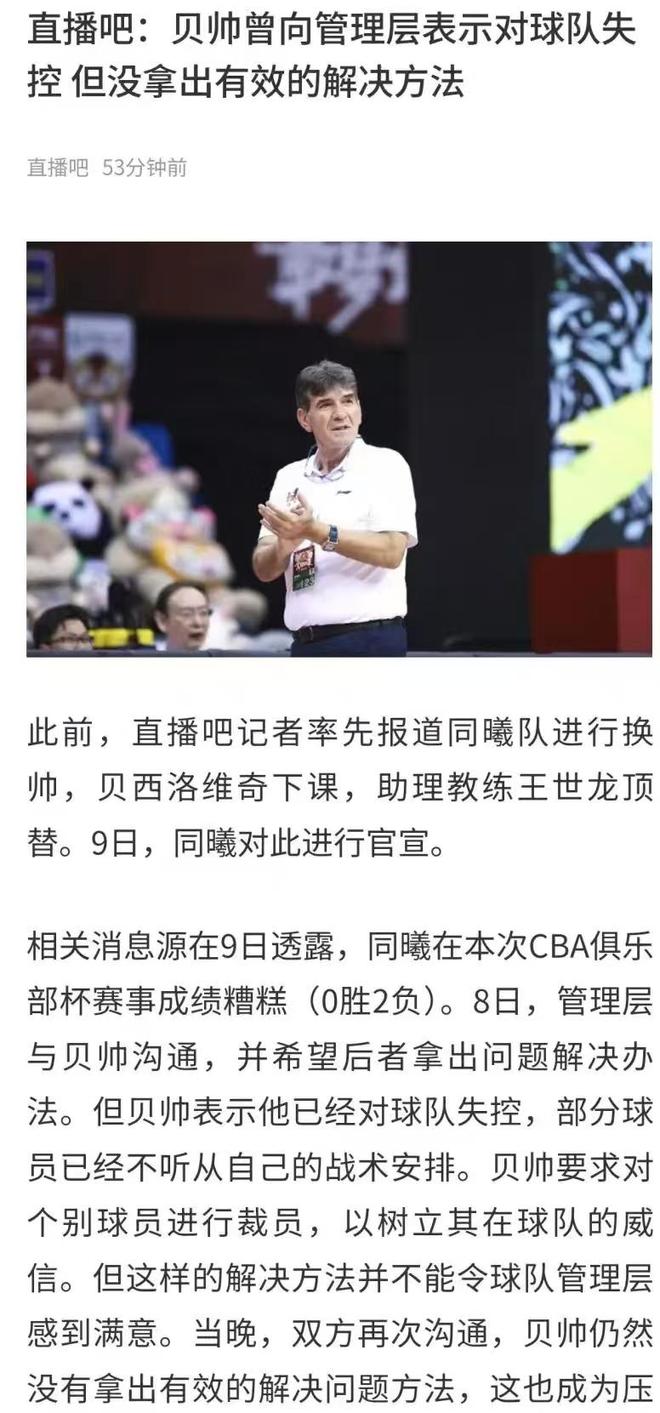 如果直播吧的爆料是真实的话,那就是个别球员联手作掉了贝西洛维。贝西洛维是位名帅,曾在西亚一些国家队执教,后来在CBA江苏队当主教练,并连续两年把江苏队带进季后赛。贝西洛维奇在同曦执教算是二进宫,西热江力下课后,同曦再次请回了贝西洛维奇,并在上赛季取得突破,带领南京同曦首次打进季后赛,应该说是一位功勋教练。